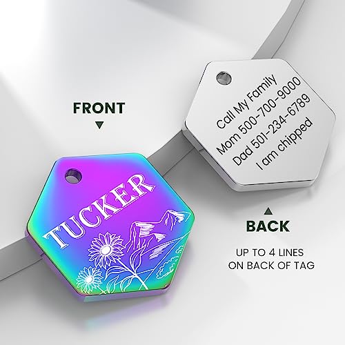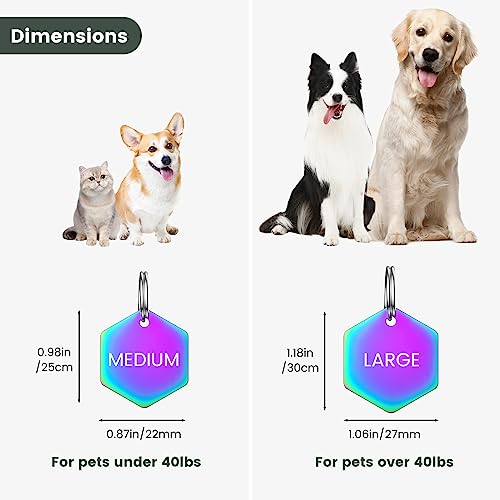 Dimensioni adatte: Le tag esagonali per cani hanno uno spessore di 0,07" (1,8 mm), una lunghezza di 1,18" (30 mm) e una larghezza di 1,06" (27 mm) per la taglia grande, consigliate per animali domestici di oltre 40 libbre;