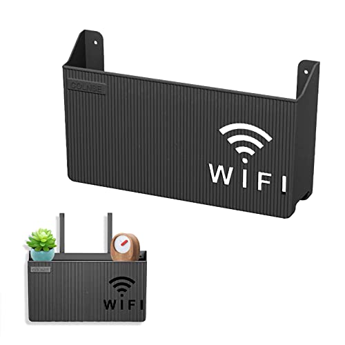 YEJAHY Scatola portaoggetti per router WiFi, montaggio a parete, per soggiorno, TV, scaffale, per la decorazione della casa, colore nero