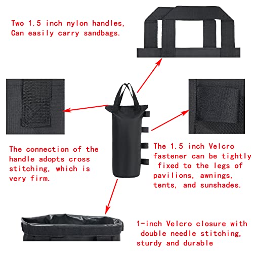 Facile da usare: il manico e le 4 cinghie in velcro rendono il sacco per sabbia facile da attaccare alla gamba del telaio, il velcro di alta qualità assicura che i pesi rimangano saldamente attaccati alle gambe del baldacchino istantaneo.