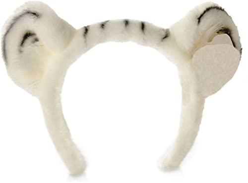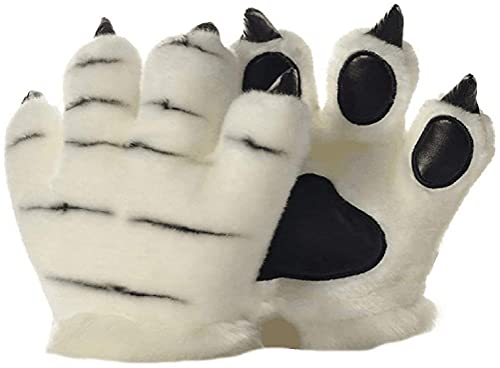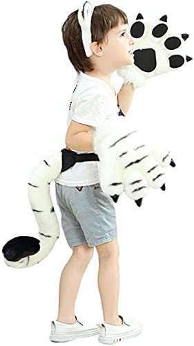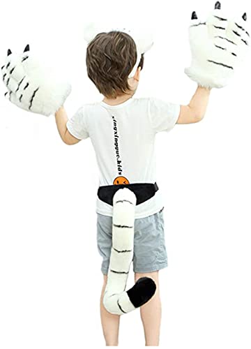 YELAN Tigre Artificiale e Zampe di Dinosauro Soffici Guanti di Peluche, Fascia per Capelli e Set di Costumi per la Coda Costume Cosplay per Bambini di Tigre o Dinosauro (White Tiger 3 PCS)