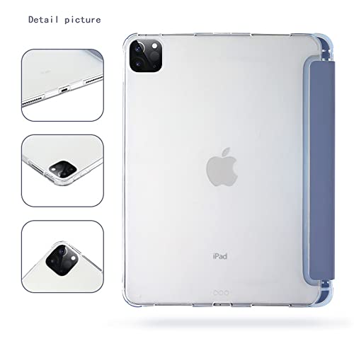 Yeliot Custodia per iPad Pro 12.9'' 2021/2020/2018(5a/4a/3a Generazione), Ultra Sottile Retro Trasparente Cover con Portapenne Supporto a Tri-Fold, Cover con Auto Svegliati/Sonno