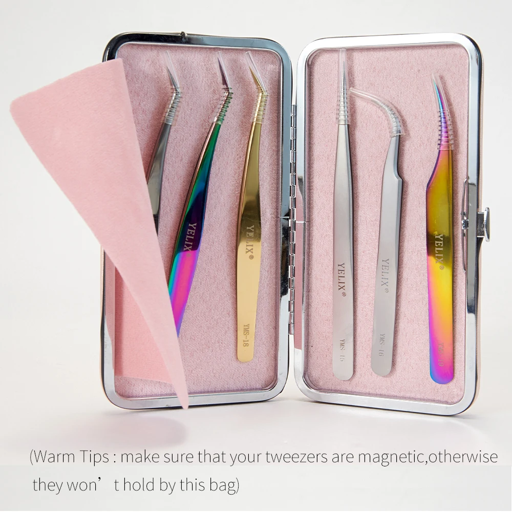 Yelix Magnetic Makeup Eyelashes Tweezer Bag Lash Extension Tweezers Case Cosmetic Tool Storage Box eyelash extension supplies