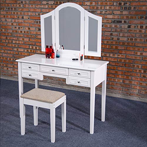 questo raffinato mobile dal sapore Vittoriano farà una bella figura nella tua camera, con lo stile classico ma anche sobrio. L'ampio specchio tri-pieghevole ti consente di osservare tutti i dettagli in tutte le angolazioni;