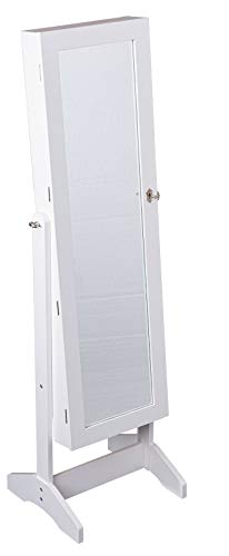 Yelloo Mod. PARIS Armadio PORTAGIOIE con Specchiera Autoportante Regolabile Organizzatore Gioielli TrucchiPorta Richiudibile con Chiave in Legno Bianco