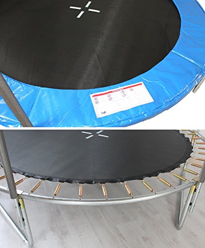 Per utilizzo domestico. Tappeto in polipropilene PP-Mesh di alta qualità. Rete di sicurezza in PP con porta di entrata. Diametro tubi della rete 25 mm. Protezione tubi in spugna. Con scaletta inclusa nei trampolini 310 e 370 cm.