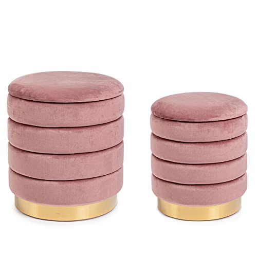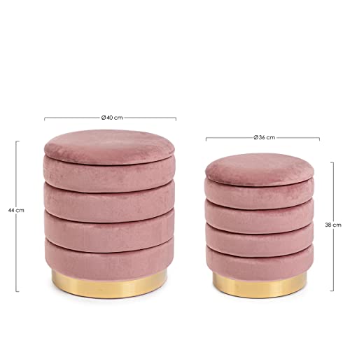 Yellow shop - Set 2 Pouf contenitore in velluto base metal DARINA Beige Grigio Rosa antico Verde acido Verde petrolio (Rosa antico)