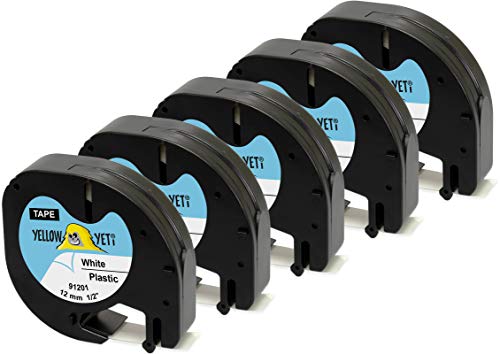 Yellow Yeti 5 Cassette Nastri 91201 S0721610 S0721660 nero su bianco 12mm x 4m Etichette in Plastica compatibili per Etichettatrici DYMO LetraTag LT-100H LT-100T LT-110T QX50 XR XM 2000 Plus