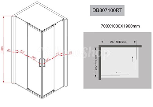 Yellowshop - Box Cabina Doccia Rettangolare In Cristallo Temperato 8mm Trasparente Bagno Porta a Nicchia Ante Scorrevoli Varie Misure Cm 70x90, 70x100, 70x120, 80x100, 80x120 (Cm 70x100)