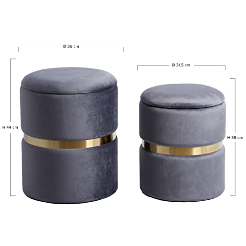 Yellowshop. - Set 2 Pouf contenitore in velluto anello gold MELIS Ambra, Avorio, Blu pavone, Grigio dark (Grigio dark)
