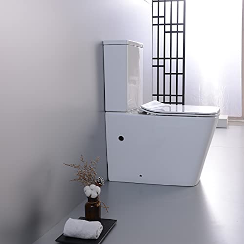 Yellowshop - Sanitari bagno a terra filo muro - Set vaso monoblocco rimless a terra con coprivaso soft-close serie Plain