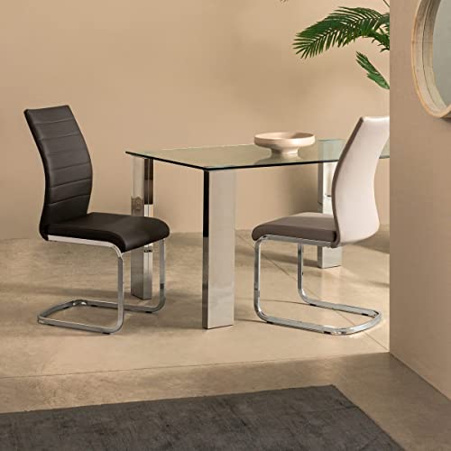 Yellowshop - Tavolo rettangolare piano in vetro temperato 12 mm struttura in mdf finitura acciaio cromo cm L140xP80xH75 ARLEY