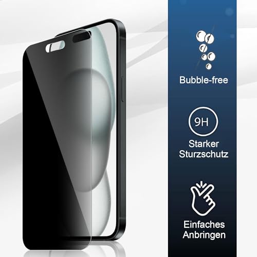 【Compatibilità】: Progettato appositamente per iPhone 15 (6.1"), si adatta perfettamente al tuo schermo e offre un'eccellente protezione per il tuo Phone. Nota: la pellicola di protezione della privacy oscurerà leggermente il display. aumentare leggermente la luminosità del telefono