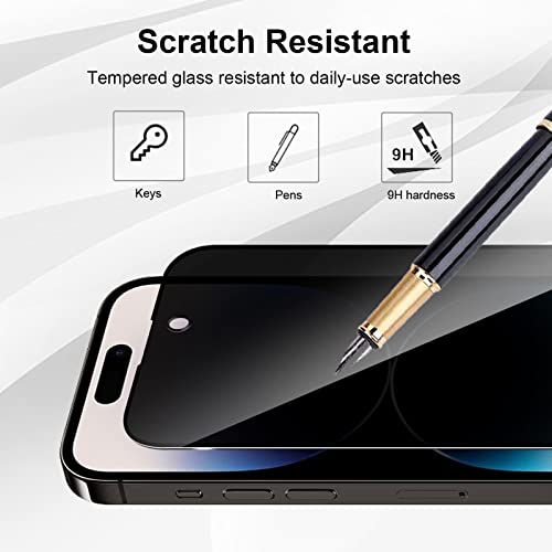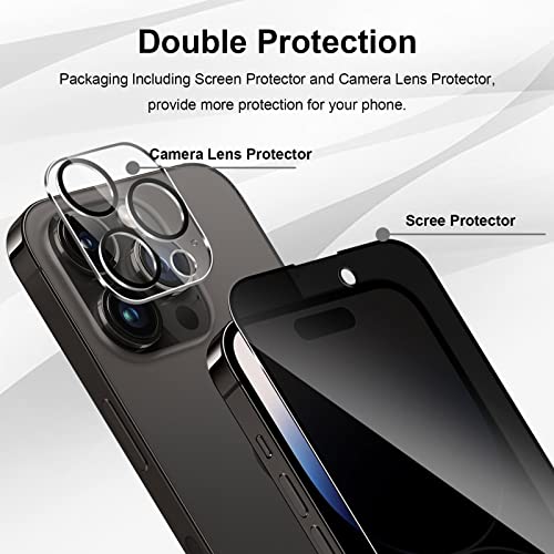 Yenwen Privacy Pellicola Protettiva per iPhone 14 Pro 6.1", 2 Pezzi Anti-spy Vetro Temperato + 2 Pezzi Pellicola Fotocamera, [Facile installare][Durezza 9H]