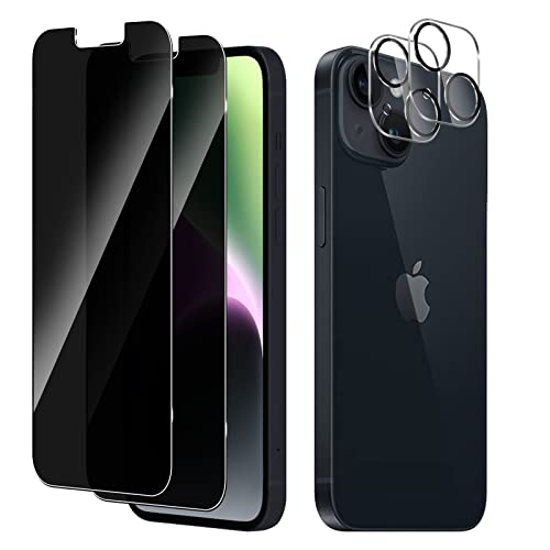 Yenwen Privacy Pellicola Protettiva per iPhone 14 Plus 6.7", 2 Pezzi Anti-spy Vetro Temperato + 2 Pezzi Pellicola Fotocamera, [Facile installare][Durezza 9H]
