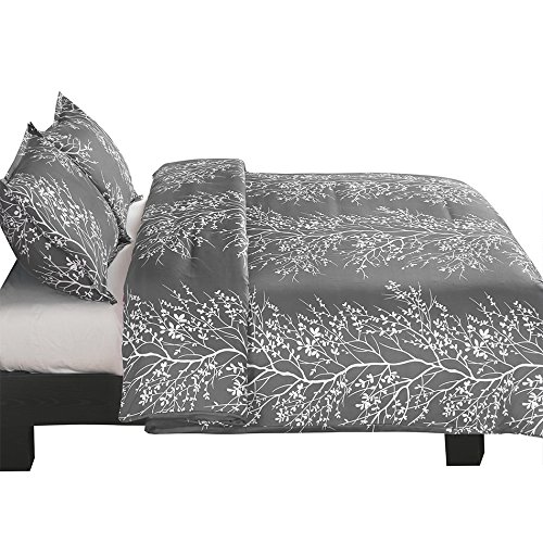 YEPINS Set copripiumino in morbida microfibra spazzolata con chiusura a cerniera e cravatte angolari, motivo floreale, colore grigio - Set copripiumino super king size (260 x 220 cm)