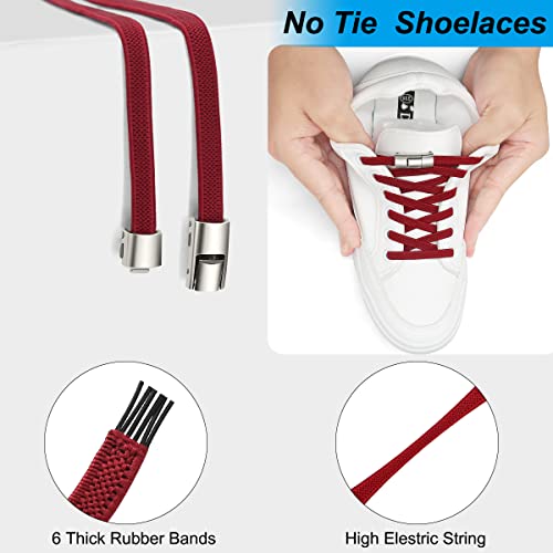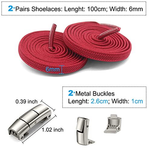 YERUUE Elastici Lacci per Scarpe Bambini Adulti, 2 Paia 1M Lacci Elastici Senza Nodo con Premere Fibbie Metalliche No Tie Lacci in Gomma per Scarpe da Ginnastica, Casual,Scarpe da Corsa (Rosso)