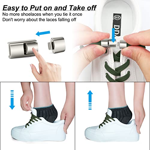 YERUUE Elastici Lacci per Scarpe Bambini Adulti, 2 Paia 1M Lacci Elastici Senza Nodo con Premere Fibbie Metalliche No Tie Lacci in Gomma per Scarpe da Ginnastica, Casual,Scarpe da Corsa (Army Green)