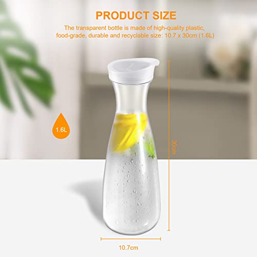 Yeruvce Caraffe per nel Plastica da 2 Pezzi da 1,6 Litri con Coperchi un Linguetta Bianca - Brocche Infrangibili per Uso Alimentare e Riciclabili - Barattolo di Succo