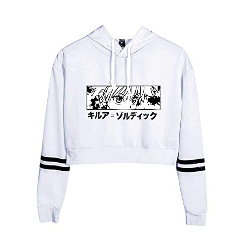 Yesgirl Hunter X Hunter Felpa con Cappuccio Donna Killua Eyes Gon Hisoka Baka Kurapika Pullover Anime A Righe Felpa da Baseball Maglione Corto Maglietta Casual E Bianco XX-Small