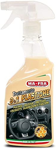 Il pulitore Trattamento 3in1 Plastiche è nato per soddisfare le principali esigenze per la pulizia e la manutenzione di plastiche e cruscotti. La pulizia degli interni della vostra auto, grazie a questo prodotto sarà facile e veloce, inoltre, con un unico trattamento potrete ottenere tre risultati: pulisce, ravviva e protegge tutto in uno.