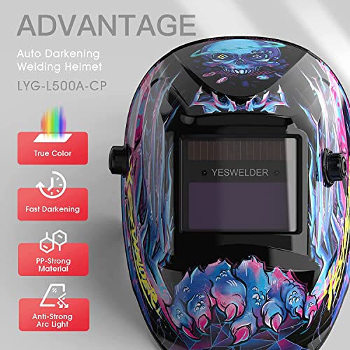 YESWELDER Casco per Saldatura True Color, Maschera per Saldatura ad Oscuramento Automatico Alimentata ad Energia Solare, Casco da Saldatore 4/9-13 ad ampia schermatura per TIG MIG ARC