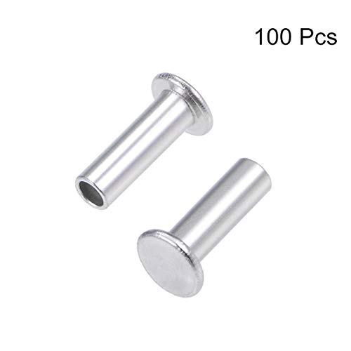 YeVhear 100 pezzi 4 mm x 12 mm Rivetti semi-tubolari a testa piatta in alluminio color argento