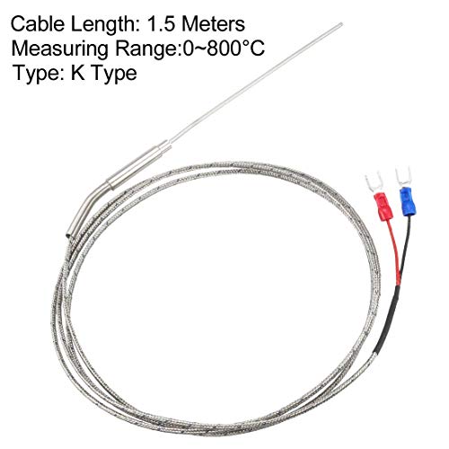 YeVhear K - Sonda per sensore di temperatura tipo termocoppia 2 mm x 100 mm con cavo 1,5 m 32-1472F / 0-800C