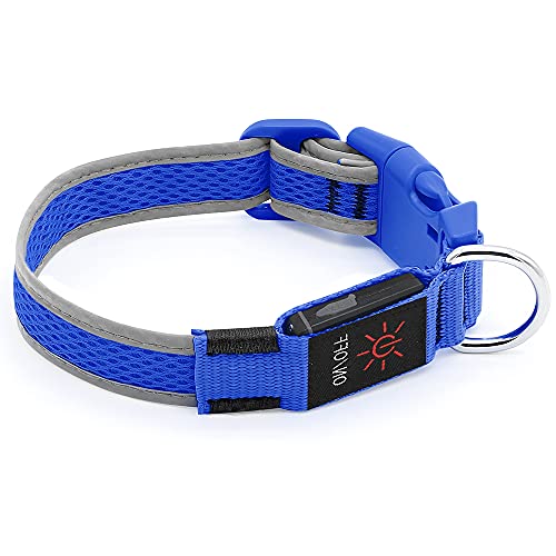 YFbrite Collare per cani con luce LED, collare per cani ricaricabile, collare per cani lampeggiante, regolabile, riflettente, di sicurezza, luce di notte (blu, piccolo)