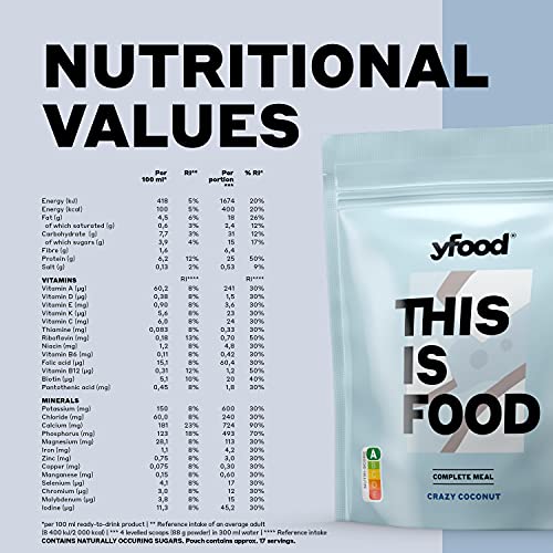 ✔️ SOSTITUTO DEL PASTO: yfood costituisce un pasto sostitutivo sano ed equilibrato grazie agli ingredienti di alta qualità utilizzati.