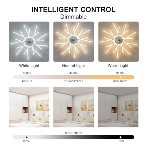 ★ [sorgente luminosa LED]: La lampada ha tre colori (luce bianca 6500K, luce neutra 4500K e luce calda 3500K). La ventola multifunzionale controlla la lampada e la ventola attraverso il telecomando. Ventilatori e luci sono funzioni indipendenti che possono essere utilizzate contemporaneamente o in sezioni per soddisfare le vostre esigenze di vita, casa e comfort.
