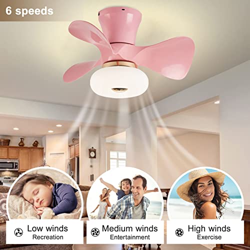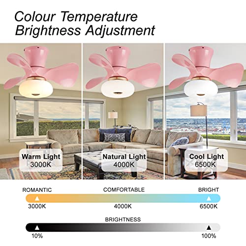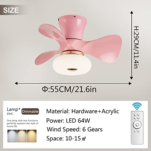 YFouCnd I Ventilatore Da Soffitto Con Luce E Telecomando Piccola Silenzioso Lampada Ventilatore Soffitto Dimmerabile 6 Velocità Con Timer Moderna Ventilatore Soffitto Con Luce Per Camera Bambini,Rosa