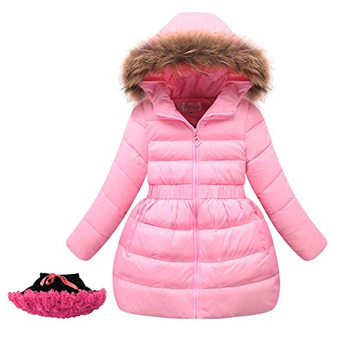 YFPICO Bambina Giacca di Piuma Ragazza Cappotto di Piumino con Cappuccio Parka Invernale a Vento, Rosa, 7-8 Anni/ 150