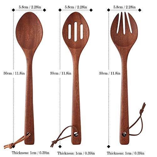 Il set da 3 pezzi include un cucchiaio scanalato in legno, un cucchiaio in legno massiccio e una forchetta di legno. Design di grande capacità utilizzato per contenere cibo o drenare rapidamente l'acqua. Soddisfano la maggior parte delle esigenze di utensili da cucina e da tavola.