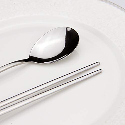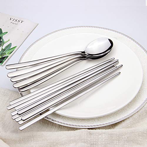 YFWOOD Set di 5 paia di Bacchette e Cucchiai, 10 Bacchette e Cucchiai Coreani in Acciaio Inox da Cucina, Riutilizzabili, in Metallo, con Manico Lungo, per Casa, Cucina o Ristorante
