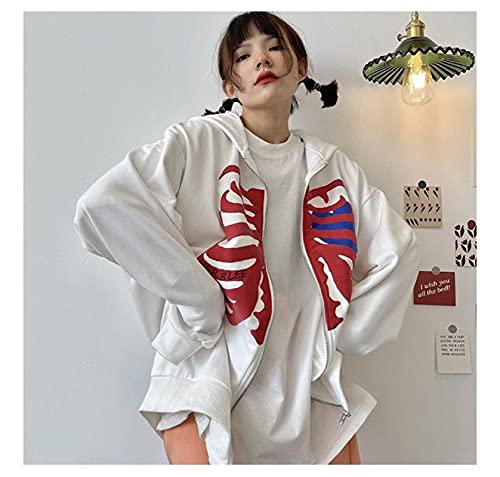 YFZCLYZAXET Maglione Felpa Hoodie Felpe con Cappuccio con Stampa Teschio Donna Felpa con Cappuccio Oversize con Zip Felpe con Cappuccio A Maniche Lunghe Cappotto con Cappuccio Abiti Gotici XL Bianco