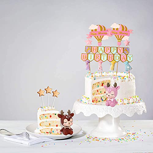 YGCHEN Happy Birthday Cake Topper Cervo Decorazione Torta Compleanno Cupcake Topper Bambina Topper Torta Rosa per Baby Shower, Natale, Halloween (20 Pezzi)