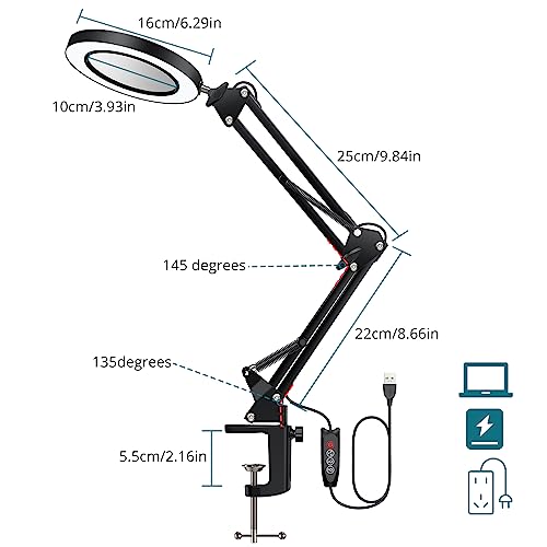 【Braccio Regolabile e Morsetto Robusto】Con un braccio lungo 50 cm e un morsetto con un diametro massimo di 5,5 cm, il nostro ingranditore offre flessibilità e libertà di regolazione dell'angolazione. Inoltre, è dotato di un panno per la pulizia per mantenere costantemente la superficie del vetro pulita e trasparente.