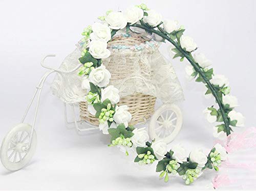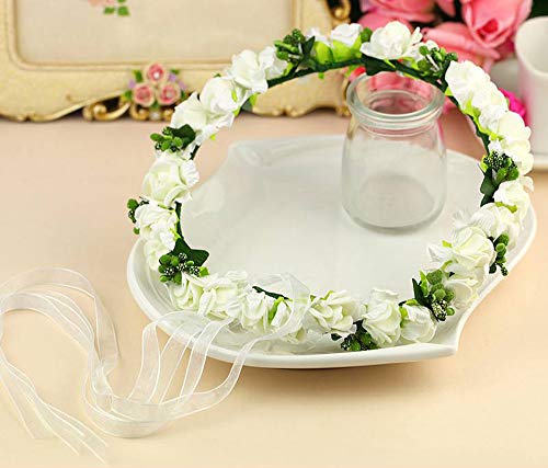 YGSAT Fiore Ghirlanda Archetto Fiore Fascia Bande Sposa Accessori Capelli per Festa di Nozze di Donna,Nastro Regolabile/Bianchi