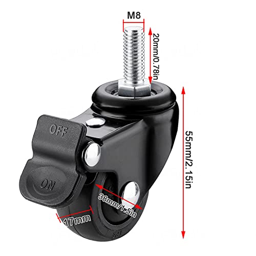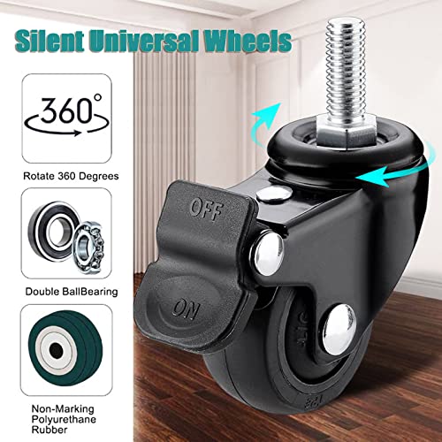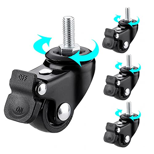 YHBZ 4 Pezzi Carrello Ruote girevoli,Rotelle di Gomma con Freno,M6/M8/M10 Vite Rod,Mobilia Sostituzione-Nero Piedi Ruota,Ruote Mute in Nylon,M8-4brakes