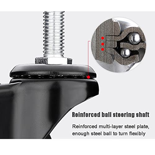 ◮ Rotazione di 360 ° senza angolo morto, albero dello sterzo a sfera rinforzato, piastra in acciaio multistrato rinforzato, sfera d'acciaio sufficiente per girare in modo flessibile, angoli lisci e camminare senza sforzo, puoi spostare le merci senza problemi.