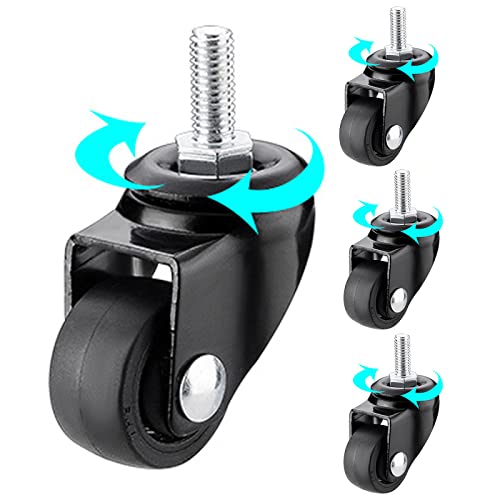YHBZ 4 Pezzi Carrello Ruote girevoli,Rotelle di Gomma con Freno,M6/M8/M10 Vite Rod,Mobilia Sostituzione-Nero Piedi Ruota,Ruote Mute in Nylon,M8-4nobrakes