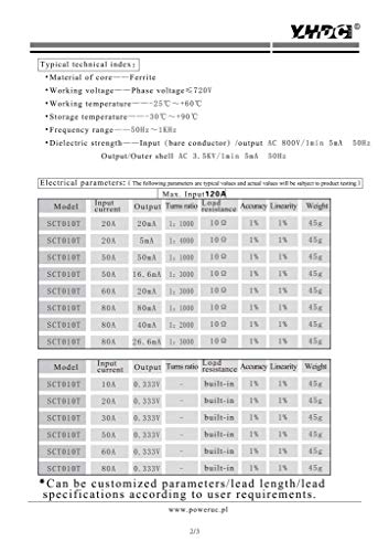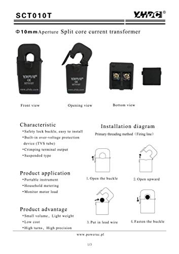 YHDC split core current transformer AC SCT010T input 10A 20A 30A 50A 60A 80A outputT 10mA 16.6mA 20mA 26.6mA 40mA 50mA 80mA / 0.333V (SCT010T 10A/0.333V)