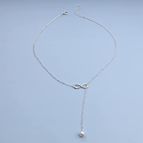 Yheakne Boho Collana di perle Infinity Collana di perle in argento Y Collana di perle a catena minimalista Y Lariat Collana di gioielli a catena per donne e ragazze (argento)