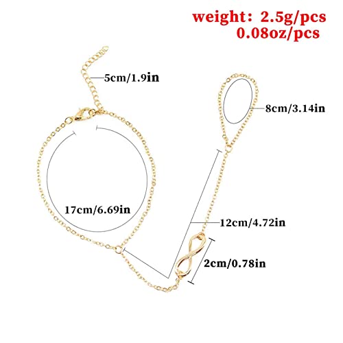 Yheakne Boho Infinity Slave Bracciale Anello in oro Bracciale da polso Bracciale con simbolo dell'infinito Bracciale a dito Bracciale minimalista a catena a mano Gioielli da sposa per donne e