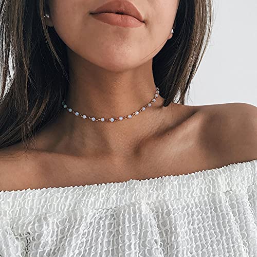 Yheakne Boho Opal Moonstone Choker Collana Piccola collana di perline Collana a catena corta Collane Gioielli per donne e ragazze adolescenti Regali