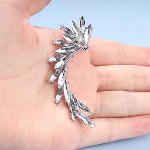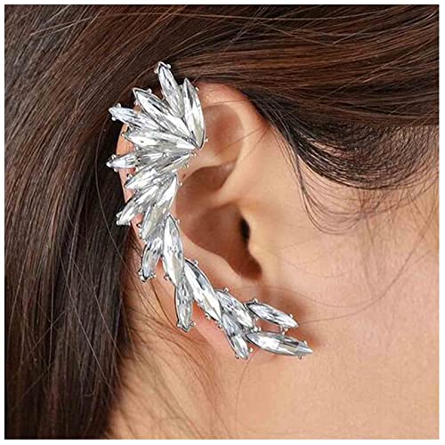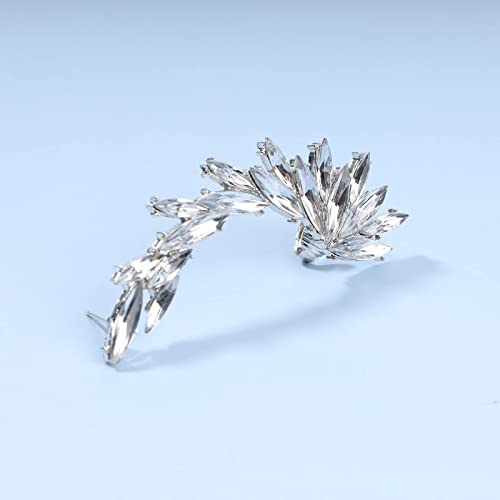 Yheakne Boho Orecchini a forma di foglia con strass Orecchini in argento con cingoli a forma di cz Orecchini in cristallo punk Orecchini da arrampicata Orecchini vintage a clip su orecchini(Argento)
