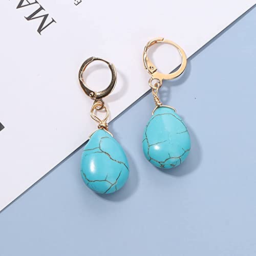 Yheakne Boho Orecchini a goccia con turchese Orecchini pendenti con turchese oro Orecchini con cerchi di pietre preziose Orecchini vintage Gioielli per donne e ragazze