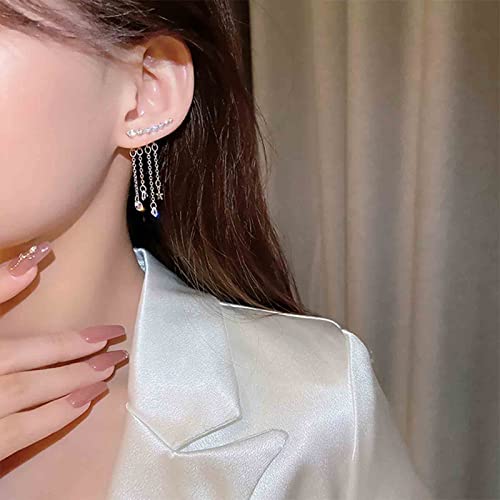 Yheakne Boho Star Ear Jacket Orecchini Argento Cz Star Ear Climber Orecchini Cristallo Catena Nappa Orecchini Cristallo Orecchio Cingolato Lungo Orecchini Gioielli Per Donne E Ragazze (argento)