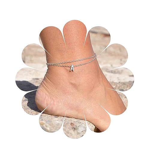 Yheakne Boho Stratificato Cavigliera Argento Lettera Bracciale Cavigliera Iniziale A Cavigliere Personlized Piede Catena Gioielli Per Donne E Ragazze (argento)