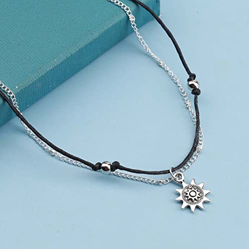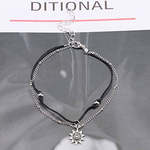 Yheakne Boho Stratificato Sole Cavigliera Argento Satellite Braccialetto Cavigliera Retrò Nero Corda Catena Cavigliera Personlized Girasole Piede Catena Gioielli Per Donne E Ragazze Regali (sole)